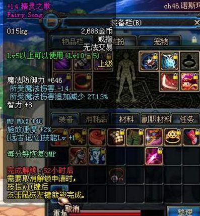 五级粉装戒指精灵之歌。一样加的百分之二释放,同时还增加了远古记忆的技能等级。不管等级多低,是粉装就绝对便宜不了。这跟六级紫装来说差的不算太多,因此性价比就远远低于前者了,属于大佬的藏品吧。